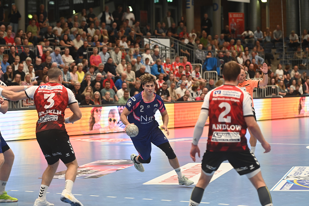 Der TSV Bayer Dormagen muss weiter auf die ersten Punkte der Saison warten. Beim zweiten Auswärtsspiel der Saison unterlag die Mannschaft von Trainer Julian Bauer der HSG Nordhorn-Lingen mit 30:27 (16:13). Obwohl der TSV immer wieder Moral bewies und zwischenzeitlich mehrfach den Anschluss herstellte, reichte es am Ende nicht, um etwas Zählbares mitzunehmen.