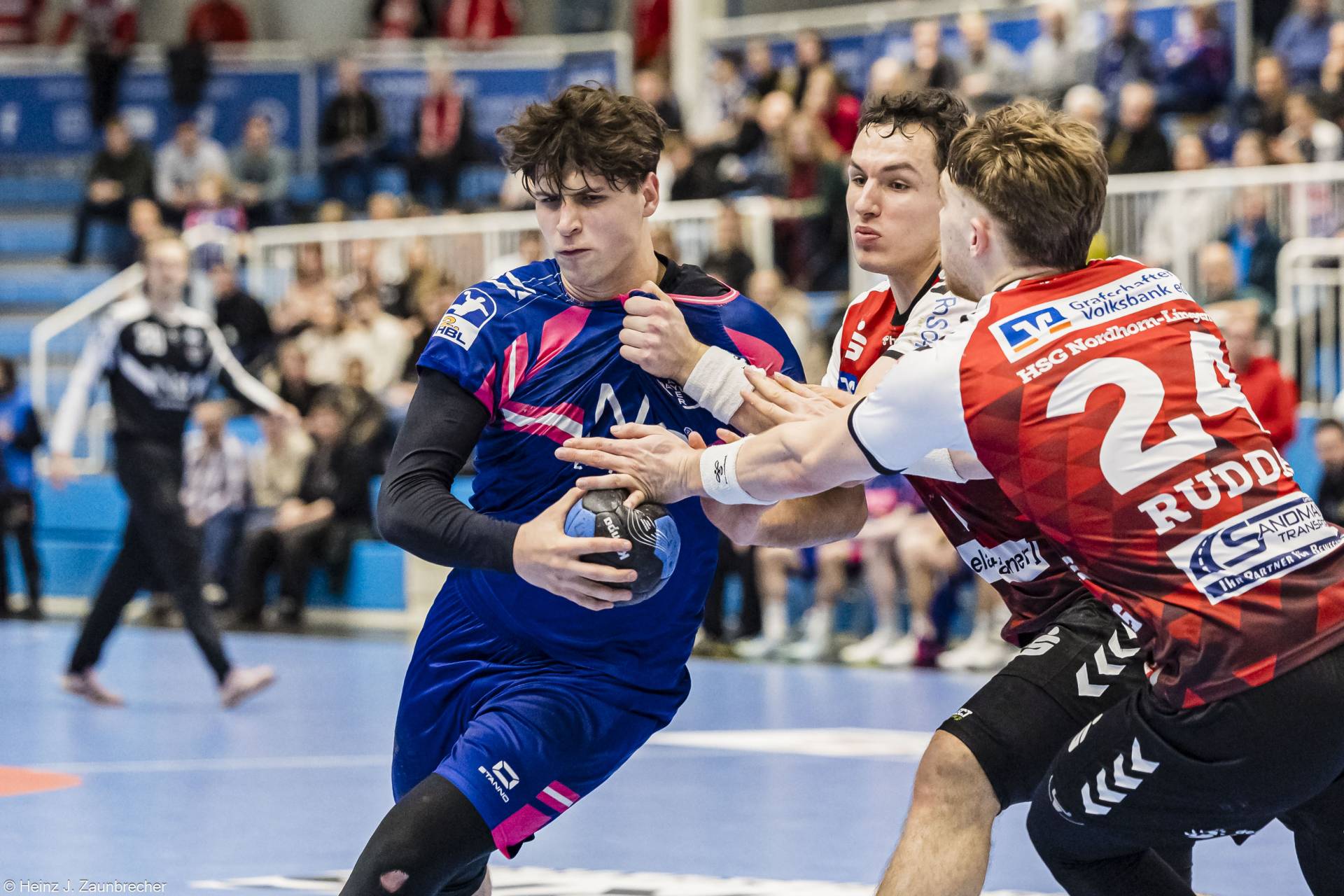 Nach dem Seitenwechsel entwickelte sich ein echter Handball-Fight mit hohem Tempo. In dieser Phase rückte Dormagens Torwart Christian Simonsen in den Fokus: Mit wichtigen Paraden stabilisierte er seine Mannschaft immer wieder, besonders in Momenten, in denen die HSG kurz davor war, das Spiel zu drehen.